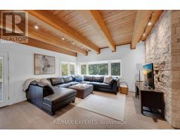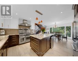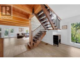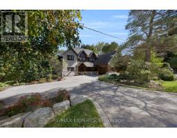 Welcome to this stunning custom-built home nestled on one of King City's most desirable, family-friendly streets. Perfectly situated on a picturesque ravine lot, this residence offers a rare blend of natural beauty, privacy, and modern luxury, you'll feel as though you've escaped to a cottage retreat in the heart of King City. Designed for everyday comfort, the home features a spacious laundry with ample storage, counter space, and room for all your needs.Whether used as a family drop zone or additional pantry space, it combines practicality with effortless style.Step inside to an interior filled with natural light from expansive windows that highlight the home's craftsmanship and timeless design. The open-concept living area is a showpiece, showcasing exposed Douglas Fir beams and stone accent walls-a perfect balance of wood, stone, and light.At the heart of the home lies the chef-inspired kitchen, where design and function unite. Crafted for both gathering and creating, it anchors the flow of daily life. Whether preparing meals or hosting dinner parties, the kitchen connects seamlessly to the dining area for effortless entertaining. With premium finishes, generous workspace, and open sightlines, it embodies the warmth and connection that make a house a home.Upstairs, discover four spacious bedrooms, each with hardwood flooring and large windows framing serene views. The primary suite is a private retreat overlooking the ravine, featuring a spa-like 4-piece ensuite, stone accent wall, and luxurious soaking tub. Beyond the walk-in closet, a private loft offers a quiet hideaway for reading or reflection.The finished walk-out basement provides flexible living options and in-law suite potential, with bright windows and direct outdoor access.Step outside to your own private oasis-an expansive wood deck accessible from three walk-outs, ideal for entertaining or unwinding amidst nature. The ravine backdrop and mature trees offer exceptional privacy and tranquility. (id:50886)