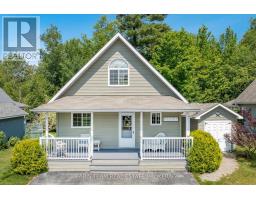 Top 5 Reasons You Will Love This Home: 1) Situated on a peaceful street in the sought-after Lakes of Wasaga Country Life, this 4-season chalet-style home delivers cozy living with the added security of a gated community, along with a full-width front porch inviting you to relax with your morning coffee or unwind as the sun sets and unlike many homes in the community, this one backs onto mature woods offering a rare sense of privacy with a tree-lined yard and direct access to a peaceful walking trail creating your own secluded escape 2) Designed with ease and comfort in mind, the open-concept layout features a welcoming gas fireplace, a main level bedroom, a 3-piece bathroom with a walk-in shower, and convenient main level laundry 3) The spacious, light-filled sunroom is a true bonus, presenting the perfect spot for a home office, second living area, or a quiet reading nook; step out onto the back deck and enjoy a private, tree-lined yard complete with nearby access to a peaceful walking trail 4) Upstairs, two large bedrooms and a handy 2-piece bathroom provide plenty of space for family or overnight visitors, creating a comfortable and private retreat for everyone 5) Enjoy all the perks of a vacation lifestyle without leaving home, including swimming pools, tennis courts, a splash pad, mini golf, basketball, and scenic trails; plus, you're just minutes from beaches, golf courses, and the excitement of Blue Mountain Village, making this your perfect all-season escape. 1,111 above grade sq.ft. (id:50886)