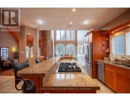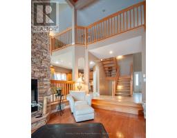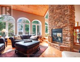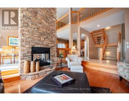 Welcome to this stunning, custom-built south-facing home on an extra-deep waterfront lot on Callander Bay, Lake Nipissing, located in the desirable Osprey Links Subdivision with full municipal services. Nestled among majestic pines, this 3,900 sq. ft. home offers 4 bedrooms, 3.5 bathrooms, and both attached & detached double car garages. The main floor boasts a welcoming foyer, a sunken living room with vaulted pine ceiling, and a beautiful floor-to-ceiling limestone double-sided gas fireplace. The open-concept kitchen and dining area features maple cabinetry, granite counters, a large island with bar seating, and 21ft vaulted ceilings, with direct access to a large south-facing deck. The main floor primary suite overlooks the lake and includes its own fireplace, two walk-in closets, and a luxurious 5pc ensuite with a soaker tub. A 2pc powder room and a spacious mudroom/laundry area with garage access complete the main level. Upstairs, a large loft with custom maple staircase overlooks the living area ideal as a lounge, office, or kids' space. The walkout lower level includes a spacious rec room, exercise/flex area, 3 bedrooms (each with double closets), a 3pc bath (shared ensuite), and a 4pc Jack & Jill bath, plus storage and utility space. The naturally landscaped lot gently slopes to the water, with a lakeside gazebo, deck, and cantilever dock for easy seasonal use. Efficient forced air gas heating with AC, plus radiant heat in the lower level. From Callander Bay to the French River you have direct access to endless boating, sailing, fishing & snowmobiling from your front door. Close to the 18-hole Osprey Links Golf Course, beaches, trails, shopping, and only minutes from North Bay, 3.5 hours north of Toronto. (id:50886)