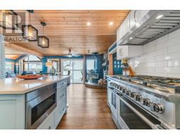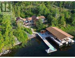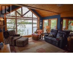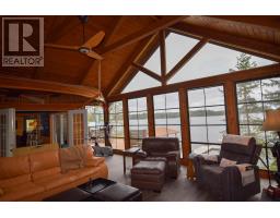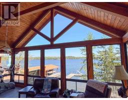 This stunning waterfront property on Poplar Bay, Lake of the Woods, offers 209 ft of prime water frontage and 3,300 sq ft of year-round living space. Featuring 7 bedrooms, 3 bathrooms, and a spacious living room with waterfront views and a wood-burning stove, this cottage is ideal for family gatherings. The newly renovated kitchen (2022) boasts floor-to-ceiling cabinetry, quartz countertops, and high-end appliances, including a Sub-Zero fridge and 8-burner gas range. The separate dining room leads to a front deck with glass railings, perfect for enjoying the view. The timber-frame sunroom is the heart of the home, with a wood-burning fireplace, in-floor heating, and large windows. The second-floor primary bedroom offers 2 en-suites, a walk-in closet with laundry, and deck access. Two additional bedrooms and a 2-piece ensuite complete the upper level. The lower level features its own kitchen, living room, 4 bedrooms (all with patio doors), and a 4-piece bathroom with custom tile. The 3-stall garage includes a workshop and 2-piece bathroom. Additional features include a backup generator, new windows, a wood shed, and a small beach area. Low height profile with deep water shoreline. Located on leased land (lease expires in 2067), with propane heat and annual fees of $2,750. Propane costs for 2024 are $4,762. This waterfront retreat is perfect for large families and entertaining. Heat: Propane in floor heat & wood stove Propane costs: $4762.00/2024 (heated year round) Assessment fee: $2750 for 2024 Chattels: Built in oven, range hood, microwave, freezer, fridge, Rental Items: Propane Tank Electrical: 200 Amp (id:50886)