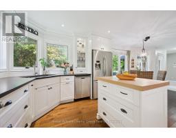 Welcome to this beautifully refreshed 4-bedroom, 4-bathroom custom home set on a private 0.7-acre tree-lined lot just minutes from downtown Fergus. With approximately 2,800 sq ft of living space, this home features a renovated kitchen with granite countertops, walk-in pantry, and coffee bar, an open-concept main floor perfect for entertaining, and a spacious primary suite with a large walk-in closet and a versatile nook ideal for an office, dressing room, or reading area. The newly reorganized second level offers private access to all bedrooms, a Jack and Jill bathroom between two bedrooms, a stunning new 4-piece family bath, and a beautifully finished ensuite in the primary. A main floor powder room adds convenience, and the family room connects directly to the laundry, which could be converted back to a 3-piece bath if one-level living is desired. The mostly unfinished basement includes a finished room perfect for an office, guest room, or potential fifth bedroom. An attached 2-car garage, front deck for enjoying the afternoon and a back deck surrounded by mature trees and perennial gardens complete this quiet, spacious, and move-in-ready in-town retreat truly one of a kind. (id:50886)