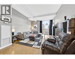 $673 MonthlyEnjoy condo living in this bright open concept one bedroom one bathroom unit, offering 855 square feet right in the core of the ever changing downtown Hamilton with new development happening all around. The space features polished concrete floors throughout with ten foot ceilings that give the unit an open, airy feel. The kitchen and living area flow together nicely, making it ideal for relaxing or hosting. The bedroom is a great size with a full closet and overhead storage. You also get in-unit laundry, an underground parking space and a storage locker on the same level. The building is well maintained and offers excellent amenities including an exercise room, rooftop terrace and party room. You are steps to the TD Coliseum, shops on Locke Street South, schools and all major amenities. (id:50886)