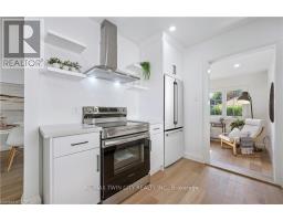 Step into this beautifully renovated 3-bedroom, 2-bathroom home offering over 1300 sqft of thoughtfully designed living space. Boasting luxurious finishes throughout, this turn-key home features durable vinyl flooring, sleek quartz countertops, and brand new appliances that blend style and functionality. The bright and airy main floor includes a spacious living room accented by a stylish barn door, and a versatile flex room just off the kitchen perfect for a home office, playroom, or mudroom with direct access to a new deck and a deep, fully fenced backyard, ideal for entertaining or relaxing outdoors. Upstairs, the main bath is a true retreat with a double vanity, elegant fixtures, and a large walk-in glass shower. The modern glass railing adds an open, contemporary feel to the staircase and upper level. Downstairs, the partially finished basement provides additional living space great for a rec room, gym, or guest area. Located in one of Stratfords most desirable neighbourhoods, this home blends timeless charm with modern updates, move in and enjoy! Renovations (2024-2025) (id:50886)