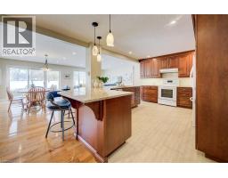 Welcome to 66 Water Street in beautiful Ayr — a spacious and well-kept all-brick side-split backing onto peaceful parkland. This inviting 4-bedroom, 3-bath home has been thoughtfully updated and lovingly maintained, offering both comfort and functionality for family living. Inside, you’ll find a bright, open-concept main floor featuring hardwood throughout the living and dining rooms, with sliders leading to a large deck and a huge backyard complete with a garden shed. The updated kitchen boasts granite counters, hardwood cabinetry, a stylish backsplash, an island with a breakfast bar, and an upgraded dishwasher — perfect for family meals or entertaining. The front family room offers a cozy retreat with soft carpeting and plenty of natural light. A main-floor bedroom (or ideal home office), convenient laundry area, and a two-piece powder room add to the home’s practicality. Upstairs are three comfortable bedrooms with plush carpet, a renovated four-piece main bath with vinyl flooring, and hardwood running through the hallway. The finished basement expands your living space with a large recreation room featuring a wood-burning fireplace, a full three-piece bath, and a workshop area in the sub-basement — perfect for hobbies or extra storage. The home is equipped with 100-amp service, central vacuum, a rented water heater, water softener, and supplemental electric baseboard heating alongside a gas furnace (2009) and central air conditioning for year-round comfort. Outside, you’ll love the double-car garage and wide driveway that easily fits five vehicles. The roof was redone in 2023 with high quality fiberglass shingles, and the exterior features all brick with newer front vinyl siding (approx. 2013). Your backyard is a private haven backing onto parkland, ideal for summer barbecues and family gatherings. Offering charm, space, and a wonderful location near all of Ayr’s amenities, 66 Water Street is a perfect place to call home. (id:50886)