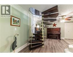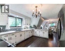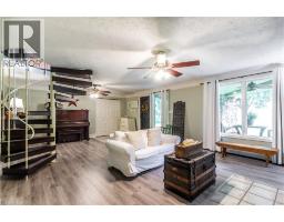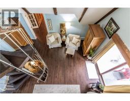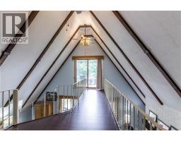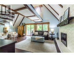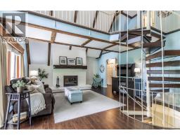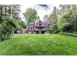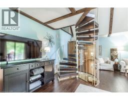 Nestled on a picturesque 0.7-acre lot surrounded by mature trees, this stunning A-frame home is a peaceful escape with the charm of a countryside lodge and the modern touches of a thoughtfully updated retreat. Located just minutes from Puslinch Lake, and a network of conservation trails, it’s a rare opportunity to enjoy the privacy of rural living with city convenience nearby. The home offers 6 bedrooms and 3 full bathrooms across three above grade levels, including the fully self-contained, 2-bedroom in-law suite on the main level — perfect for extended family, guests or a young adult craving their own private space. A custom walnut-encased spiral staircase winds through the heart of the home, connecting each level with architectural flair. Upstairs, cathedral ceilings, wood-burning fireplace and exposed beams give the living areas warmth and character. The updated kitchen features Corian countertops, stainless steel appliances, and overlooks the backyard oasis. Step out onto the two-tiered composite deck with sleek glass panel railings to take in views of vegetable gardens, a horseshoe pit, firepit, gazebos and 2 sheds for additional storage. It is the perfect space for year round entertaining. The expansive detached garage includes a workshop, and driveway offers 8 additional parking spaces to accommodate all of your guests. The second-floor balcony and third-floor terrace offer quiet spaces to sip your morning coffee or wind down with a book. With its welcoming charm and storybook setting, this property captures that cozy, timeless feeling like it belongs in a Hallmark movie. (id:50886)