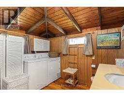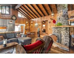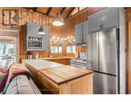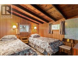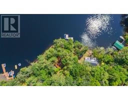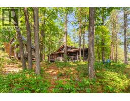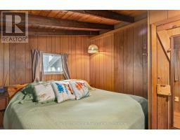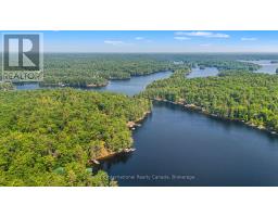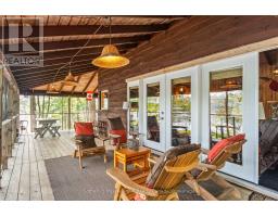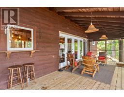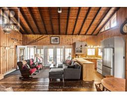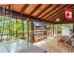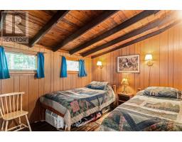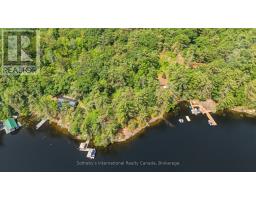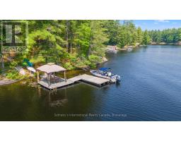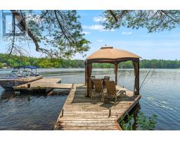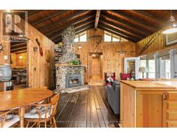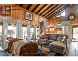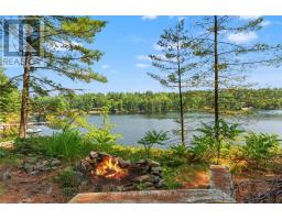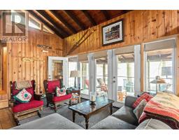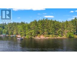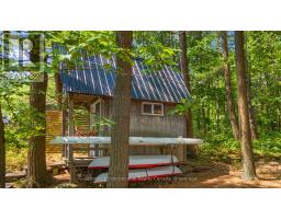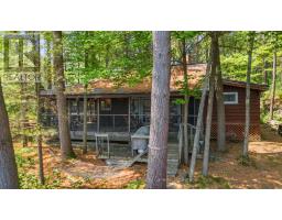 Welcome to your own private retreat on a picturesque point of land offering 188 feet of pristine shoreline and 1.41 acres of natural beauty. Accessible by boat only and just 8 minutes from the marina, this exceptional property offers peace, privacy, and the perfect setting for creating unforgettable memories with family and friends.The charming 3-bedroom cottage features soaring vaulted ceilings and an open-concept layout combining the living room, dining area, and updated kitchen. A striking stone fireplace anchors the space, creating a cozy and inviting atmosphere. The expansive wraparound screened-in porch spans two sides of the cottage perfect for entertaining, dining, or simply enjoying the gentle breezes and views. A 3 piece bathroom with laundry add convenience, while a separate bunkie with a sleeping loft provides ample space for guests. Down by the water, you'll find large docks with a covered gazebo section ideal for lounging in the shade, watching the sunset, or enjoying the excellent swimming with a sand and rock bottom shoreline. Included in the sale are a Searay bowrider, aluminum boat, two kayaks, paddle boat, and windsurfer - everything you need to start enjoying the cottage lifestyle immediately. A rare offering on a desirable stretch of shoreline. Don't miss this unique opportunity to own a fully-equipped, turnkey waterfront escape. (id:50886)