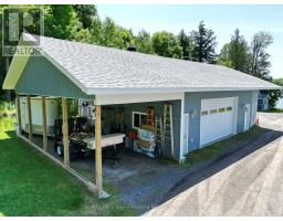 Executive Waterfront Home on Wilson Lake Port Loring. This exceptional executive home offers the perfect blend of luxury, comfort, and convenience. Ideally situated close to town, its well-suited for year-round living or as a four-season cottage retreat. Enjoy 230 feet of pristine waterfront on Wilson Lake with a 65' x 6' aluminum dock and ramp, nestled within the serene Unorganized Township of Wilson. The quality-built 3-bedroom home features bright, open living spaces and premium finishes throughout. Step outside to a spacious deck overlooking the lake, or retreat to the insulated 14' octagonal gazebo, a cozy and heated getaway nook. The property also boasts a 46'x30' insulated garage with gym space, an additional 14'x30' carport, and multiple outbuildings including a dock shed, storage building, and a 36'x16' boat storage facility. The home is equipped with 200-amp hydro service plus an additional panel with GenerLink connection for peace of mind during outages. Sitting on a 6.8-acre lot, the property offers both privacy and convenience, located within walking distance to the amenities of Port Loring. Inside, many furnishings remain, along with high-end appliances, including: KitchenAid 26 cu. ft. refrigerator, KitchenAid induction cooktop with dual ovens (one convection), KitchenAid dishwasher, Sharp microwave, Magic Chef wine fridge, Maytag stackable washer & dryer, 65" LG OLED television. This move-in ready home combines upscale living with lakeside charm, and a flexible closing is available. Don't miss this rare opportunity to own a stunning waterfront property on Wilson Lake, part of the Pickerel River system offering 65km of boating. Other features as shown in photos include :a boat, motor, trailer, ATV, Massey tractor, snowblower, 2 generators, flat back aluminum canoe and electric motor, pedal boat, kayak(s). Don't forget to ask about the details of owning in an Unorganized Township. (id:50886)