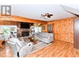 Spectacular 4-Season Lakefront Home on Sandy Beach - Chemong Lake south of the Causeway. Welcome to lakeside living at its finest! This beautiful 4-season home is nestled on a sandy beach and armour stone along Chemong Lake, part of the Trent Severn Waterway. Boasting 74 feet of pristine waterfront, crystal clear waters, and breathtaking western sunsets, this property offers the ultimate in relaxation, recreation, and year round enjoyment. Set on a generous 74' x 204' (irregular) lot, this home features 3 bedrooms, 2 bathrooms, and a stunning sunroom with panoramic lake views. The open-concept kitchen, dining, and living area is warm and inviting, complete with a woodstove insert-perfect for cozy evenings after a day on the water. Outdoors you'll love the renovated wet boathouse, 4-sleeper bunkie, and extensive dock system, ideal for entertaining, swimming, boating, or simply soaking in the sun. A wrap around front deck complete the picture - an ideal space to take in the view or gather with friends and family. Located south of Chemong Causeway, you're just a short walk to the village, and minutes to shopping, churches, a community centre, pharmacy, and only 8 minutes to town. (id:50886)