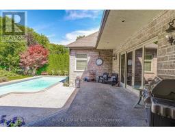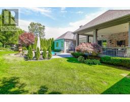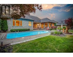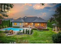 Prepare to be amazed the moment you step through the grand, upgraded solid mahogany door of this remarkable open-concept bungalow. Nestled on a tranquil cul-de-sac in Niagara's prestigious Calaguiro Estates, this 2,740 square foot home exemplifies luxury living with premium finishes, meticulous craftsmanship, and professionally landscaped grounds with an irrigation system. Designed for culinary excellence, the gourmet chef's kitchen is paired with a dedicated prep kitchen, offering unparalleled functionality for those who love to cook and entertain. The expansive living and dining area is adorned with an impressive stone gas fireplace, striking 26-inch crown mouldings, and oversized sliding patio doors that open to a secluded backyard retreat. Here, you'll find a heated saltwater pool and a stunning portico, an idyllic setting for outdoor gatherings and relaxation. The luxurious primary bedroom boasts a custom walk-in closet and a spa-inspired five-piece ensuite finished with elegant travertine and hardwood flooring (under the carpet). An additional bedroom, main floor laundry, central vacuum system, and a hidden loft room provide extra space, comfort, and convenience for everyday living. Downstairs, discover a media room, exercise room, and office, most basking in natural light from oversized windows. The lower level also offers the potential for a complete in-law suite, featuring a spacious five-piece ensuite bathroom and a private entrance, making it ideal for guests or extended family. Completing this extraordinary residence is a triple attached garage, seamlessly blending functionality and style for the ultimate in refined living. Pre-Inspection report just completed. (id:50886)