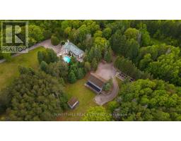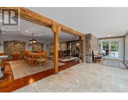 Gated and tree-lined for total privacy, 68 Crows Pass is a Gordon Ridgely-designed Indiana-limestone and slate manor that delivers true four-season living just forty-five minutes from downtown Toronto via direct Highway 407 access. The home wraps approximately 7,000 sq ft of interiors around authentic 1802 farmhouse stone walls and hewn beams, beginning with a marble rotunda and hand-forged spiral staircase that lead to principal rooms opening onto a 100-foot limestone terrace overlooking a heated salt-water pool, whirlpool and hot tub. A Sub-Zero, Thermador and Miele kitchen centres a twelve-foot island and sun-splashed breakfast bay, while the adjoining beam-clad family room and original stone dining hall celebrate the estates heritage. Upstairs, five ensuite bedrooms and a library or sixth bedroom await; the forty-three-foot primary wing enjoys three sets of French doors to private balconies, a fireplace sitting area, twin walnut dressing rooms and a spa bath framed by a Palladian window. The walk-out lower level provides a games lounge, wet bar, guest suite and covered loggia, ensuring effortless indoor-outdoor entertaining through every season. Lifestyle amenities continue outside: a heated three-plus-car coach house currently a full gym and additional bedroom the loft-style second garage crowns the stone-clad barn for additional collectibles. Equestrians will value three stalls, a tack room, two cross-ties and a fenced paddock, and ready for an arena, and dual gated drives simplify daily comings and goings. This home offers Starlink, multi-zone HVAC, water purification, EV Charger, Credit Valley sandstone accents and a slate roof complete this rare fusion of architectural pedigree, resort comfort and year-round recreation, with Dagmar and Lakeridge ski clubs, golf courses and trail networks only minutes away. Zoning per Township of Scugog Zoning By-law: ORM-EP (Oak Ridges Moraine Environmental Protection) (id:50886)