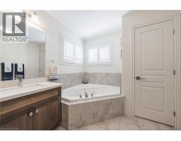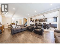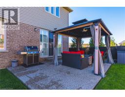 Step inside this stunning 5 bedroom, 2.5 bath, 2748 sq. ft home located directly beside lush greenspace in sought after Binbrook community. Enjoy privacy and open space to the west side of the property giving families additional space to enjoy the outdoors. Losani built home with 70k of recent upgrades. Thoughtfully designed interior for those who love to entertain. Welcoming large foyer leads to open concept layout flowing seamlessly from a chef inspired kitchen-featuring a large 6-person quartz island, brand new appliances, walk in pantry, stunning extended cabinetry with undermount lighting and ample prep space check off all the I wants in this kitchen. Spacious living area highlighted by a custom stone-faced entertainment wall and rich hardwood floors throughout. Walk out patio doors lead to tastefully and professionally finished backyard space equipped with concrete patio, gazebo and shed. Wood staircase leads to bedroom level featuring 5 bedrooms blanketed in hardwood floors with second level laundry. Luxurious master bedroom features his/her large walk in closets and ensuite bathroom. With roughly 8’4” ceiling height, roughed in full bath, and approximately 1,100 square feet of customizable space, the unfinished basement is waiting for your finishing touches. Great curb appeal highlighted with concrete veranda/steps with aggregate border and professionally installed soffit LED Gemstone Lighting System to welcome you home.Style comfort and functionality come together perfectly in this beautiful modern home (id:50886)