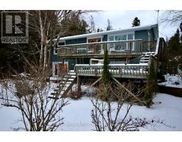 Experience the best sunsets Ontario has to offer with this beautiful waterfront cottage, located on a quiet street a short drive from the hub of Tobermory! Enjoy lakeside views from the living room and the open concept layout of the main floor, made cozy by the propane fireplace. Enjoy a morning coffee and the sound of waves from Lake Huron on the large porch! Down the hallway, you'll find two comfortable bedrooms, including a primary bedroom with a spacious walk-in closet and a show-stopping view of the lake through the bedroom window! A charming library is located on the lower floor of the home, a bookworm's haven with plenty of shelf-space and another cozy fireplace. The lower floor also features a sizeable storage room and a three piece bathroom. Outside, the property contains lots of parking and an adorable bunk house for guests! Don't miss out on this fantastic opportunity to make this piece of Northern Bruce Peninsula paradise your own! (id:50886)