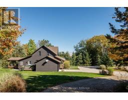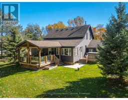 Classic country style Beaver Valley home on 1.3 beautifully landscaped acres of land. Full width covered porch with seating area at the front door. Spacious and bright interior main floor with large seating areas and dining room with wood stove. Sliding door walk out to 16'x14' covered back deck with glass railings overlooking ravine, stream and mature trees. Main floor primary suite with 3pc ensuite bath. Upstairs 4 guest bedrooms. House is heated and cooled by Geothermal forced air furnace. Full unfinished basement has plenty of storage and a walk out to ground level greenhouse. Single car attached garage. Ornamental grasses, mature trees and natural wooded surroundings combine to create a private setting. On the hillside above the house is a perfect spot for a guest house or rv / trailer capturing countryside views to Old Baldy. This home is in close proximity to the Bruce Trail, only 8 kms to Kimberley and 11kms to Beaver Valley Ski Club. Meaford Harbour is 15km to the north, as well as many other recreation areas. A peaceful location for comfortable year round country living. (id:50886)