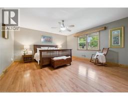 Welcome home to 688 Rockway Drive, where timeless charm meets a beautiful and peaceful setting. A landscaped front yard, flagstone walkway and patio lead you into the foyer of this brick 2500+sf, 3+ bedroom, 3-bath home bursting with character and craftsmanship. The impressive great room features a wood-burning fireplace with oak and marble detail, a large picture window, and plenty of space for both living and dining. The kitchen feels instantly inviting, with warm wood cabinetry and a bright dinette that walks out to a multi-tiered deck overlooking the yard backing directly onto Rockway Gardens. The main floor further hosts a spacious primary bedroom, a large main bathroom, a wood-panelled office that ties beautifully into the fireplace detail, and a versatile family room for flexible living. A great bonus to offset monthly expenses are the owned solar panels generating approx $4,000 annually. Carpet-free (except for the stairs) and featuring mostly hardwood floors throughout the main and upper levels, this home is filled with natural light from many large windows. Upstairs, you’ll find two generous bedrooms, a full bath, extra closets, a large storage space along the front of the home, and a handy laundry chute accessible from both levels. The finished lower level offers a walkout to a private patio and has been professionally designed as a 1–2 bedroom in-law suite. Additionally this level provides multiple storage rooms and a large utility room with a workshop area. A single-car garage provides inside access and another storage room off the garage. Updates include furnace (2021), A/C (2016), and many windows throughout. Set just up the street from Rockway Golf Course’s clubhouse and framed by the beauty of Rockway Gardens, this home feels like an escape from the city — yet close to all amenities and easy highway access. Lovingly maintained by the same owners for 35 years, this must see home presents an incredible opportunity in a truly special location. (id:50886)