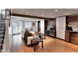 Freshly sodded backyard! Talk about location! This 4 bedroom home is located in a quiet enclave surrounded by high end homes and backing onto protected greenspace! This one really checks all the boxes! Featuring a large primary bedroom complete with a walk-in closet, & a beautifully renovated ensuite with a 6ft walk-in shower. The main bathroom - also recently renovated - is modern and bright. The carpet free main floor is the perfect spot for entertaining! With a beautiful dining area, a cozy living room - complete with a gas fireplace you'll want to host all your family gatherings here! The kitchen features plenty of storage, stainless steel appliances, quartz countertops, freshly painted cabinets and excellent views out to the treelined backyard. Rounding out this main floor is a 2 piece bathroom & main floor laundry! The walkout basement adds loads of additional living space including a large bedroom, a 3 piece bathroom, a wet bar and tons of built in cabinetry, perfect for games, toys or collectables. Both the upper and lower deck span the length of the home, making for great outdoor living space and even better views of the beautiful backyard & mature trees. Walking distance to some of the Regions top rated schools, parks, trails & a quick drive to the 401 you're not going to want to miss out on this one! Updates & features include - paint & lighting throughout, newer furnace, new front door, front walkway & landscaping, California shutters & more! (id:50886)