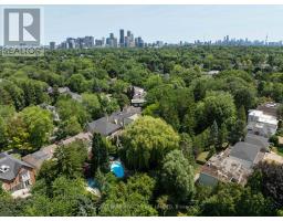 Muskoka vibes in the city! Enjoy luxury resort-style living on a spectacular 55 x 192 property tucked into a serene, private setting. The lush, landscaped grounds are truly show-stopping, featuring a shimmering pool, hot tub, cabana/bar with 2-piece bath, greenhouse, gazebo, and privacy-enhancing greenery, including a majestic willow and mature Japanese maple. French doors from the family and dining rooms open to sun-soaked terraces, perfect for seamless indoor-outdoor entertaining. Renovated by Powell & Bonnell, this 5-bed, 6-bath home blends timeless character and modern comfort. Sophisticated maple floors with black inlay on the main level are a refined statement. The elegant kitchen features granite counters, quartzite island, built-in desk, and a premium 4-oven AGA stove. A well-equipped mudroom connects to the garage and includes custom storage & chic powder room. Both the living and family rooms are anchored by stylish gas fireplaces, creating cozy, inviting spaces. Upstairs, chic oak floors run throughout. Four large bedrooms offer excellent flexibility, three with private ensuites and a fourth with a bath just steps away. The 1,560 sq ft lower level adds comfort & function, with a media/games room (built-in TV, custom cabinetry, heated floors), a beautifully appointed office with custom bookcases, gas fireplace, and a private guest/nanny suite with full bath. Additional highlights include a spacious laundry room and bar area. This property offers the peace of a weekend retreat with an unbeatable city location. Sought-after schools include John Ross Robertson and Havergal College. This remarkable property is not just a house, it's a lifestyle built for living well. (id:50886)