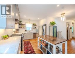Welcome to this completely renovated century home, where timeless character meets refined modern living. Perfectly positioned just steps from downtown Stratford, this remarkable residence offers over 2,000 square feet of beautifully curated space. Picture yourself wandering to vibrant restaurants, world-class theatres, and the charming local library—all within minutes of your front door. Here, you’ll experience a lifestyle immersed in the arts, culture, and community that make Stratford so special. From the moment you arrive, the home’s inviting curb appeal captivates you, with a stunning covered porch that invites quiet morning coffees or relaxed evening conversations. Inside, custom hardwood floors flow seamlessly through the main level, leading you to a spacious living room anchored by new built-ins and a cozy gas fireplace—an ideal space for connection and comfort. The open dining area overlooks the backyard, effortlessly blending style and warmth for everyday living or elegant entertaining. The heart of the home, a custom kitchen by Wood Décor, is a chef’s delight featuring granite countertops, new stainless steel appliances—including a gas range—and a thoughtful layout that marries function with artistry. Upstairs, four generous bedrooms a wait, each with hardwood floors and a beautifully updated main bathroom. The third floor unveils a private primary retreat, or recreation room complete with a spa-like ensuite adorned with Restoration Hardware fixtures, elegant tilework, and heated floors for ultimate indulgence. , a new fence and spacious deck create the perfect backdrop for summer gatherings. Every detail has been thoughtfully updated—newer front and side doors, spray-foamed basement insulation, driveway (2021), roof (2019), furnace (2022), and A/C (2022). Fully rebuilt from the studs with new wiring, plumbing, and HVAC, this home offers a seamless fusion of heritage charm and modern sophistication. This isn’t just a home—it’s a way of life. (id:50886)