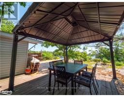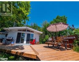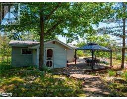 This old fashioned, two bedroom family cottage is located in tranquil Stewart's Bay on the west shore of Bone Island. It has been lovingly maintained with a large sundeck, hot tub and sheltered seating areas over looking spectacular long south views of Georgian Bay. A large, dock accommodates four boats with a minimum of four feet of water depth. There is a great workshop/bunkie with one bedroom and storage. The property has 240 feet of rocky shore and just under one acre of land. (id:50886)