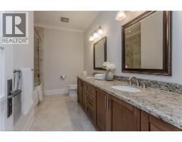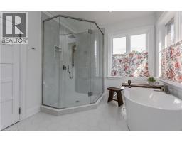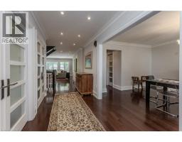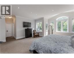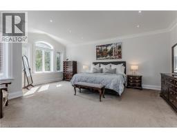 Welcome to 694 Cedar Ave, a rare half-acre oasis in Burlington’s coveted Aldershot neighbourhood, just five minutes from downtown and the lake. Custom built in 2009 with over 4,500 sq ft of finished living space (3,300 above grade) and soaring 9’ ceilings, this residence combines timeless craftsmanship with modern updates. The park-like grounds feel more like a country retreat than a city lot. A shimmering saltwater pool with safety cover, tiered deck with custom louvered pergola, covered porch with pot lighting, fire pit, and curated landscaping with maples, poplars, redbuds, and evergreens create a setting that is truly exceptional. Inside, the custom Gravelle kitchen with butler’s pantry, walk-in pantry, and wine fridge flows into a sun-filled great room with expansive windows overlooking the gardens and pool. Hardwood floors, an elegant dining room, and a versatile main-floor den complement the space, along with a stylish powder room with heated floor. Upstairs, the primary suite offers dual walk-in closets and a brand-new spa-inspired ensuite with freestanding tub, tiled glass shower, towel warmer, double vanity, and heated floor. Three additional bedrooms include one with its own ensuite, while the main bath also features heated floors. The finished lower level extends the living space with 8’ ceilings, oversized windows, a cozy gas fireplace, recreation room, guest suite, full bath, and generous storage. Parking is abundant with a paved driveway for up to nine cars, plus both an attached garage and a detached tandem two-car garage with front and back auto doors. This is a rare opportunity: space, privacy, and natural beauty, all in an unbeatable location. (id:50886)