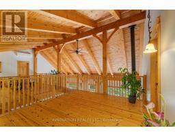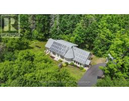 Discover your Urban Oasis! This custom-designed, ecologically sustainable post-and-beam home sits on a serene peninsula in Pembroke, with 2.8 acres of lush forest. Enjoy privacy and natural beauty while having all amenities at your doorstep. The open-concept main level boasts 23-ft ceilings and features a newly renovated kitchen with custom pine cupboards, quartz countertops, and modern appliances. Relax in the curved sitting area with a gas fireplace or by the wood stove in the living room. The main level includes an office, two full bathrooms, and three bedrooms, including the primary suite with a walk-in closet and sliding doors leading to a patio with river views. The upper level offers bonus rooms, a large storage area, and a fourth bedroom overlooking the garden. Updates include paved driveway with a gate 2023, new washer & dryer 2022, infrared sauna 2023, new owned Hot Water Heater 2025. Additional features include two outdoor sheds, a hot tub, and solar panels providing passive income. Book your showing today! (id:50886)