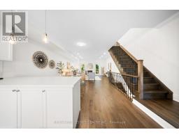 $384.60 MonthlyWelcome to this stunning and spacious 3-bedroom, 4-bathroom executive townhome, ideally situated in the heart of desirable Ancaster Village. Nestled in an exclusive 10-unit complex backing onto a private ravine, this meticulously maintained residence offers 2,000+ sq. ft. of beautifully designed living space with exceptional upgrades throughout. Step inside from the charming covered porch into a versatile flex space with direct access to the garage and a walkout to an exposed aggregate patio. A convenient 2-piece bath with quartz vanity completes this level extending your living space ideal for a home office, recreation room, guest suite or even a 4th bedroom. The main level is designed for modern living and entertaining, featuring soaring 9-ft ceilings, crown moulding, hardwood floors, and pot lighting. A striking gas fireplace anchors the open-concept living room, with double doors leading to a deck overlooking the ravine perfect for barbecuing. The bright dining area and crisp white kitchen boast quartz counters, a breakfast peninsula, gorgeous hexagon backsplash, stainless steel appliances, and ample cabinetry. Upstairs, the primary bedroom offers a walk-in closet and upgraded ensuite with a glass walk-in shower and ravine views. Two additional bedrooms, a full 4-piece bath with quartz vanity, and convenient upper-level laundry provide comfort and functionality. Located just steps from amenities, coffee shops, dining, bakeries, trails, schools, and boutique shopping, this move-in ready home combines luxury, convenience, and a serene natural setting. A rare opportunity to own a premium Ancaster townhome! (id:50886)