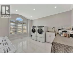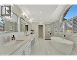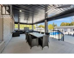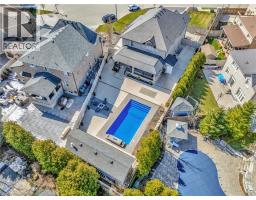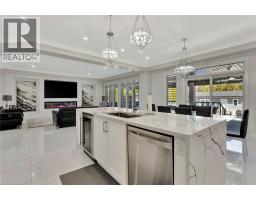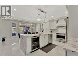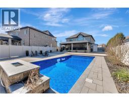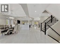 Welcome to 7 Bernini Court a beautifully appointed 3,480 square foot two-storey home located in a quiet, family-friendly neighbourhood on Hamilton's West Mountain. Set on a generous 109 x 217 ft lot, this property offers impressive curb appeal with professionally landscaped front and rear yards, creating a peaceful, resort-like atmosphere. The large driveway provides parking for up to nine vehicles and leads to a spacious three-car garage. Step through grand 8-foot double doors into a bright, two-storey vaulted foyer that sets the tone for the homes open and airy layout. The main floor features elegant 30 x 30 white porcelain tile throughout the dining room and eat-in kitchen. A clean, modern design includes white cabinetry, quartz countertops and backsplash, a built-in espresso station with full-height pantry storage on both sides, and a large island perfect for everyday meals or entertaining. Sliding doors off the dinette lead to a 16 x 35 ft covered porch overlooking the backyard oasis complete with a 16 x 32 ft inground saltwater pool, ideal for hosting family and friends. Upstairs, you'll find four spacious bedrooms and two well-appointed bathrooms, along with a convenient laundry room all featuring heated floors. The finished basement includes a self-contained one-bedroom apartment with a separate entrance, perfect for extended family or rental potential. This home offers comfort, space, and style a great fit for families or those looking for flexible living options in a desirable location. (id:50886)