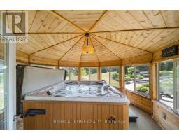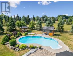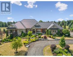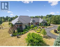 Welcome to this stunning detached custom-built bungalow offering over 5,000 sq ft of beautifully finished living space, nestled in Port Perry's exclusive Castle Harbour community. Set on a premium 2+ acre lot with southern exposure, this elegant estate combines luxury, tranquility, and convenience. Ideally located just minutes from historic downtown Port Perry, you'll enjoy fine dining, boutique shopping, and marina access all within walking distance. Commuters will appreciate being only 20 minutes from Hwy 407. Inside, the 4+1 bedroom, 5-bathroom executive home features a stunning 2025-renovated chefs kitchen with custom cabinetry, a large quartz centre island, and new hardwood flooring. The grand front hallway showcases 2025-installed custom porcelain tiles, while the upgraded laundry room (2025) adds everyday functionality with elevated style. The newly upgraded finished walkout basement (2024-2025) is designed for entertaining, complete with heated porcelain floors, a custom bar, and a wine cellar. Architectural details include coffered ceilings, rich hardwood floors, crown mouldings, and a striking cathedral ceiling in the Great Room. The lower level also features a private, self-contained apartment with a separate entrance, full kitchen, spacious living room, laundry, bathroom, and walkout to a secluded patio perfect for guests or multigenerational living. Step outside and experience resort-style living: multiple walkouts lead to a large composite deck, a wraparound covered porch with views of Lake Scugog, beautifully landscaped gardens, mature trees, a tranquil pond, hot tub under a gazebo, and a fenced in-ground pool. A dedicated golf chipping green completes this luxurious outdoor retreat. Additional highlights include a metal roof, bright oversized principal rooms, new 3-car garage doors, and driveway parking for up to 30 vehicles. This one-of-a-kind estate delivers the ultimate in refined living, privacy, and lifestyle. (id:50886)