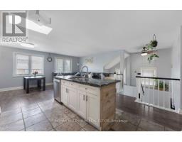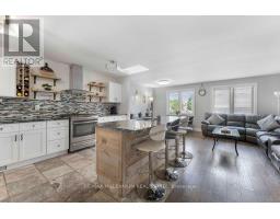 This stunning custom-designed home with walk-out lower level 1 bedroom suite offers exceptional curb appeal and a thoughtfully renovated interior with modern upgrades throughout. Located in highly desirable Courtice neighbourhood, the property backs directly onto serene parkland, providing privacy and a beautiful natural backdrop.The main level features an open-concept living and dining area with wide plank laminate flooring, an elegant remodelled staircase, and an inviting foyer accented with designer wall details and travertine stone flooring. The fully updated kitchen boasts travertine tile floors a skylight, stylish backsplash, granite countertops, a centre island, and a breakfast bar-perfect for entertaining and family gatherings. The spacious primary bedroom includes a semi-ensuite bath and a generous closet.The fully finished walk-out lower level is another world in itself and offers a bright Living room with a cozy fireplace and above-grade windows, an additional bedroom, a full bathroom and a small kitchen. There is a separate entrance to the walkout apartment on the above ground lower level with a great rental potential.Exterior highlights include a private, fenced backyard with gate access to the park, a large deck with hot tub, new insulated garage doors, a widened driveway, and a double-car garage.Some recent renovations include a brand new roof with 15 years warranty, full bathroom remodelling (in the walkout unit) and new washer and dryer.Priced to sell. ** This is a linked property.** (id:50886)