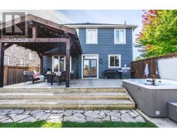 DESIGNER FINISHES, FAMILY-SIZED SPACE, BACKING ONTO A PARK WITH A BACKYARD BUILT TO WOW! Think executive-style living, exceptional finishes, a spacious interior, and a backyard haven with a deck, wood gazebo, hot tub, and no direct rear neighbours backing onto a park - this one has it all! Located in the sought-after Mountaincroft neighbourhood of Collingwood, this beautifully maintained home backs directly onto Mountaincroft Park and playground, offering a family-friendly setting. Enjoy four-season living with Blue Mountain Resort, Georgian Bay, beaches, golf, hiking, Scandinave Spa, and downtown shops and dining just minutes away. Designed with coastal flair, the home features a gabled roofline, a blue exterior, a double garage with an inside entry, manicured gardens, a covered front porch, and double front doors with a transom window above. Built in 2015, the property offers over 2,100 sq ft of space, featuring cohesive finishes, modern lighting, and stylish decor. The living room features a gas fireplace, custom-built-ins, a TV niche, display shelving, accent lighting, and oversized windows. The showstopping kitchen presents white shaker cabinets, granite counters, a subway tile backsplash, stainless steel appliances, including a gas stove, an oversized island with seating, and a double-garden door walkout. A defined dining area adds warmth with board-and-batten detailing and statement lighting. Appreciate the convenience of main floor laundry, complete with storage cabinets and a sink. Upstairs, the generous primary suite features a walk-in closet, a board and batten feature wall, a sitting area, and a luxurious 5-pc ensuite with a dual vanity, soaker tub, and a large glass-walled shower. Three additional bedrooms are tastefully decorated and share an oversized 5-pc bathroom. The fenced, landscaped backyard is the ultimate escape with a hot tub, wood gazebo, gas BBQ hook-up, and a large deck. Rarely offered and impossible to forget - make it your #HomeToStay! (id:50886)