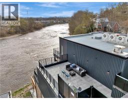 $942 MonthlyOne of the most distinctive homes in the building, nicknamed The Townhome. This two-storey residence blends architectural character with contemporary design across 1,693 sq/ft of living space and over 800 sq/ft of private outdoor space. Showcasing original exposed brick and beam details, Unit 204 offers a unique sense of warmth and history while still delivering modern luxury. Wide plank hardwood flows through the main level, paired with a striking kitchen outfitted with Fisher & Paykel appliances, quartz countertops, and custom cabinetry. Both bathrooms feature spa-inspired finishes, including heated floors. The primary bedroom features a generous walk through closet and lovely bathroom, and a generous den on the 2nd level makes the perfect home office, sleeping space or second lounge. With elevator access from the second level and direct street-level entry (the only unit with this in the building), this unit lives like a private townhome. Two expansive riverside patios—including one oversized terrace—offer spectacular outdoor living and breathtaking views of the Grand River. The upper level terrace is roughed in for an outdoor kitchen, with Hot/Cold Water, Natural Gas and Electrical, while the main wall has been pre-wired for an electric awning. Included is a large storage locker and access to the resident only riverside patio perfect for casting a line or launching a canoe. (id:50886)