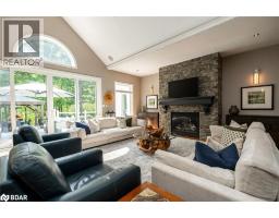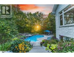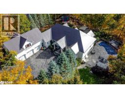 8,000 + SQ FT ESTATE ON 1.33 ACRES WITH RESORT STYLE BACKYARD, POOL, HOT TUB, TRIPLE CAR GARAGE & ADDITIONAL LIVING QUARTERS! Situated in one of Oro-Medonte’s most prestigious enclaves, this bungalow offers over 8,000 sq ft on 1.33 acres of landscaped grounds with a stately stone exterior. A long driveway provides parking for 16, complemented by a heated 3-car garage with a lift for 4 car capacity and an EV charger. Soaring ceilings, refined craftsmanship and designer finishes define the home. The chef’s kitchen impresses with solid wood cabinetry, a massive island, premium appliances, including a $24k Thermador range, while a breakfast nook captures serene forest views. A dining room with a custom-built-in cabinet is perfect for entertaining, and the living room features a stone fireplace and walkout. The primary offers 2 walk-in closets, a walkout to the pool and an ensuite with heated floors, soaker tub, and glass-walled shower. 2 additional bedrooms share a 4-piece bath, with a powder room, laundry and mudroom completing the level. The walkout basement boasts 3 additional bedrooms, including one with a semi-ensuite 4-piece bath, a 2-piece bath, a spacious den/craft room, and a rec room featuring a double-sided fireplace, wet bar, pool table, and games area, and a walkout to the backyard. Above the garage, a private living area with a separate entrance includes a kitchen, living and dining space, bedroom, laundry hookups, and independent heating/cooling. The backyard presents an inground saltwater pool with a waterfall, hot tub, pool house, gazebo, patio, and an 8-zone irrigation system. Upgrades include an aluminum roof (2018), 2 furnaces and 2 A/C units (2022), a generator (2022), Phantom Screens, powered window coverings, a Sonos sound system, wired security, high-end lighting, a striking glass and hardwood staircase and a 9’ x 14’ sliding glass wall. Minutes to golf, skiing and Lake Simcoe, less than 15 minutes to Barrie and approx. 1 hour to Pearson Airport. (id:50886)