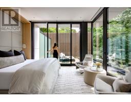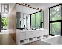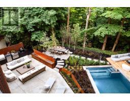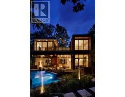 Inspired by the precision and versatility of a Swiss Army knife, this internationally award-winning, architecturally significant residence offers over 6,000 sq.ft. of luxury living on a private, forested ravine cul-de-sac. Designed with dynamic multi-level functionality, its dual wings are connected by a sleek glass bridge and clad in a striking blend of reflective titanium, simulated walnut, and rich black Palisade panels. A descending entrance introduces the main living area where a panoramic fireplace anchors open-concept spaces extending to the outdoors through a dramatic, folding glass hangar door. Every detail is engineered for seamless living and entertaining from the indoor/outdoor dining areas, hidden wine closet, and wet bar to the amenity-rich lower level featuring a full kitchen, gym, and theatre. The primary suite is a true retreat with his-and-hers closets, a spa-inspired ensuite, and a private balcony overlooking the ravine. Outside, a tiered infinity pool, integrated outdoor kitchen, and fire table are enveloped by nature, creating a breathtaking, resort-like oasis. (id:50886)