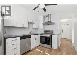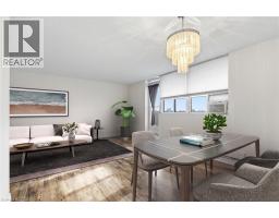 $520.33 MonthlyBeautifully maintained one-bedroom suite in central Burlington’s Empress Condominium. This bright and spacious unit is ideally located in the heart of Burlington, just a short walk to the Burlington Centre, with easy access to shopping, dining, and many amenities. The L-shaped living room leads to a large private balcony — perfect for enjoying spectacular sunsets. The dining area is conveniently positioned off the eat- in kitchen, which features stainless steel appliances, granite countertops, and white shaker-style cabinetry. The generous bedroom includes a large double closet with mirrored doors. Updated four-piece bathroom. Convenient in-suite locker and laundry room with full-sized washer and dryer. This carpet-free suite has been freshly painted and is move-in ready. Includes one underground parking space. Residents enjoy 24- hour concierge service and an impressive range of amenities, including an outdoor pool, party room, library, fitness room, car wash bay, and ample visitor parking. Enjoy comfort, security and convenience in this well-managed condominium building. (id:50886)