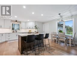Nestled among trees, trails, and a spring-fed pond, this stunning bungalow offers a peaceful escape just minutes from Fergus and Elora -and less than half an hour to the heart of both Guelph and Waterloo. Set on 3.35 acres, 7003 Beatty Line delivers the space, style, and serenity you've been searching for. Whether you're upsizing your lifestyle or downsizing your maintenance, this home rises to meet you. Inside, natural light pours through generous windows, highlighting a 2200 sq ft layout with rich finishes and effortless flow. The custom Mennonite kitchen (2021) anchors the heart of the home, while updated bathrooms (2024), wide-plank flooring (2021), and newer windows and doors (2022) elevate every corner. Four bedrooms and 3.5 baths provide room to grow, host, or simply breathe. Step outside to a multi-level deck, flagstone firepit (2023), and private dock - perfect for morning coffee or sunset gatherings. The oversized 3+ car garage with workshop is a dream for hobbyists, and the basement walk-up to the garage adds flexibility and function. Downstairs, enjoy a cozy woodstove, games area, and custom bar for weekend entertaining, plus a separate living space with it's own entrance - ideal for guests or multi-generational living. Though surrounded by nature and privacy, this home is fully connected with fibre optic high-speed internet - perfect for today's work-from-home and family needs. With major updates already done (roof, furnace, water system), this home is move-in ready and thoughtfully equipped. Surrounded by nature, trails, and open skies, this is more than a home - it's a lifestyle. Come experience the beauty, privacy, and possibility of Beatty Line. (id:50886)