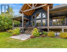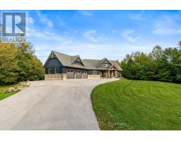 An extraordinary lifestyle opportunity awaits in a sought after neighbourhood in Georgian bluffs. Refined design and natural beauty come together in perfect harmony. Crafted in 2020, this custom timber frame estate rests on nearly 3 acres of secluded, forested grounds and showcases over 4,600 sq. ft. of thoughtfully curated living space. A true sanctuary, this private residence offers an inspired blend of timeless elegance and modern luxury, perfect for those who cherish space, serenity, and a deep connection to nature.Step inside to find soaring 24 foot height cathedral ceilings, a grand stone fireplace, and expansive windows that invite the forest views indoors. The open concept layout flows into a chefs gourmet kitchen featuring a 9x5 quartz island, premium appliances, and a large walk in pantry, perfect for hosting, or enjoying calm mornings in a peaceful setting.The main floor offers a private primary suite with a spa like ensuite and walk in closet. Upstairs, two additional bedrooms, a full bath, and a quiet loft create space for family or guests. The finished lower level includes two more bedrooms, a large rec room with a bar, and a private access to the garage, ideal for extended family, a wellness studio, or private guest quarters.Over $135,000 in thoughtful upgrades bring confidence and ease, including a Generac whole home generator, new asphalt driveway, professional landscaping with armour stone, and a full security system.The heated and insulated triple garage features high ceilings and oversized doors, perfect for your vehicles, storage needs, and space to keep your ATVs, boats, and recreational toys organized and secure.If youre looking for a luxury home with privacy, space, and connection to nature, yet just minutes from town, this one stands apart. Call your REALTOR today to schedule a private showing! (id:50886)
