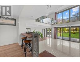 This remarkable residence, surrounded by nature on a rare 0.6-acre lot backing onto a park, offers a perfect blend of privacy and proximity to local amenities.Offering 4,650 sq ft of finished living space (3,500+ sq ft above ground), the home features a 2022 addition by Angelica Homes that is seamlessly integrated with the solid, fully upgraded,double-brick original house. The open-concept layout creates an inspiring atmosphere for living, working, relaxation, and social connection. Floor-to-ceiling, southeast-facing windows provide a picture-perfect 360 serene view and an abundance of natural light. Interior highlights include two Brazilian cherry/walnut staircases, custom glass and metal railings, granite countertops, designer paint, and award-winning Italian/Spanish porcelain tiles. The second level is finished with Mercier hardwood and features a dual wrap-around mezzanine with a balcony, ideal for a home office, studio, lounge, gym, and yoga space.The home also features a separate-entrance basement studio with a kitchenette, full bath, two closets, and laundry facilities. Exceptionally adjustable comfort is supported by a highly efficient modern mechanical system and includes four thermostats, heated floors throughout,with 17 independent zones, heat pumps, air conditioners, radiators, a tankless water heater, airtight spray-foam insulation, and a foam-insulated exterior with acrylic aggregate stucco that is extra durable, and crack-, fade-, and fire-resistant. The expansive lot features a circular driveway, parking for 10+ cars, gated parking for a boat/RV, two EV chargers, a 19-ft-long (5-ft-deep) year-round swim spa with an automated Covana cover, and a powered 384 sq ft studio/garden building for additional storage or hobby space. The property meets zoning requirements and is rough-in ready for an 860 sq ft. detached or attached Additional Residential Unit, offering flexible potential for generational orincome use. (id:50886)
