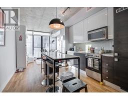 Welcome to Art Condos, one of Toronto's most admired boutique residences, known for its award-winning architecture and modern design. Nestled just steps from Queen West, this location offers the perfect blend of culture, convenience, and community. Enjoy being surrounded by trendy cafes, restaurants, galleries, nightlife, shopping, and easy access to TTC, Liberty Village, and Trinity Bellwoods Park. This beautifully designed suite features 10-foot ceilings, an open-concept layout, enjoy an airy, loft-like space. The European-inspired kitchen boasts integrated appliances, sleek cabinetry, and a versatile island with storage, perfect for both everyday living and entertaining. Floor-to-ceiling windows bathe the space in natural light. Other highlights include exposed concrete ceilings, engineered hardwood floors, ensuite laundry, and thoughtful storage solutions. Discover modern urban living in one of Toronto's most dynamic neighbourhoods-this is Queen West at its best. (id:50886)