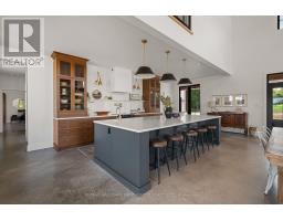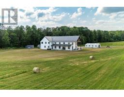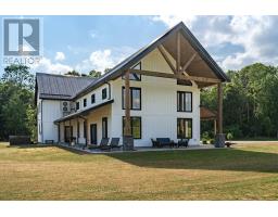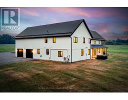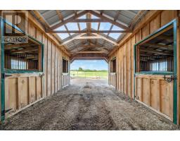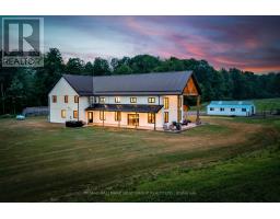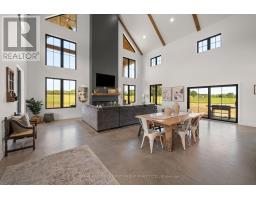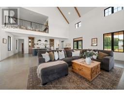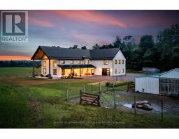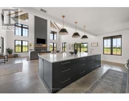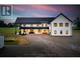 A rare opportunity where timeless elegance meets luxurious country living on 63.16 acres! Whether you're searching for a hobby-farm, hay farm or a chance to unwind in luxury, this 2023 custom-built, architectural masterpiece offers over 5,300 sqft of magazine worthy living space. In 5 beds, 4 baths and upper level, in-law suite potential you will appreciate the bold design coupled with modern comfort. Soaring 26ft ceilings & beam detail in the living room welcome you to the open concept living space where heated, polished concrete floors run throughout. The custom kitchen overlooks both the dining area and living room, offers stunning views of the landscape and features quartz counters & back splash, premium pot drawers, glass cabinetry, pot filler, full appliance package & 14ft centre island. Tucked behind is the secondary prep-kitchen which dreams are made of! Catering to a large family, you will appreciate the expansive laundry room, mud room w/ inside entry to the 2+ car garage w/ drive through door, heated flooring & hot/cold water service, as well as the spacious primary suite complete with a walkout to the stamped concrete, covered porch, a 5pc. ensuite which includes a soaker tub & glass walk-in shower as well as a walk-in closet featuring natural light. On the upper level, a massive bonus room offers versatile space for a theatre, home gym, private retreat, or in-law suite (2nd stairs can be added & septic is rated for it) in addition to the 3 bedrooms and 2 full bathrooms on this level! As an added bonus, the 7-stall horse barn is perfect for equestrian lovers or hobby farmers. Whether you're enjoying panoramic views and sunsets in peaceful solitude or hosting guests in open, light-filled spaces, this is truly one-of-a-kind!! Located just minutes from golf courses, 401 access, and essential amenities, it's more than a home, it's a lifestyle unlike any other. Extras: hydrounic heating system, constant pressure well pump & electrical r/i for generator. (id:50886)