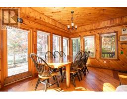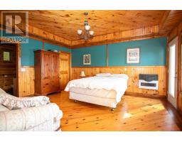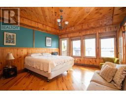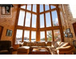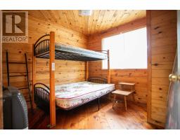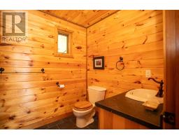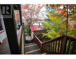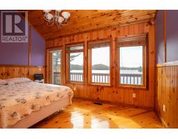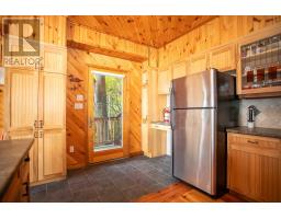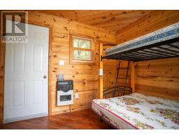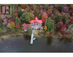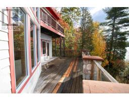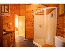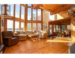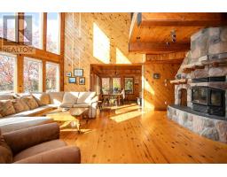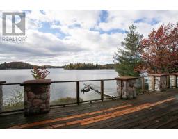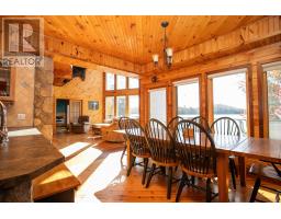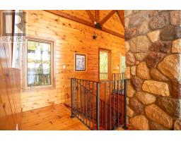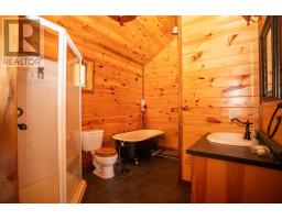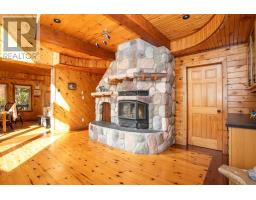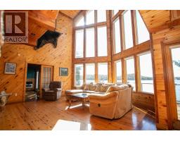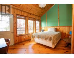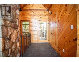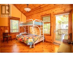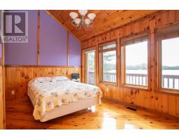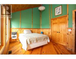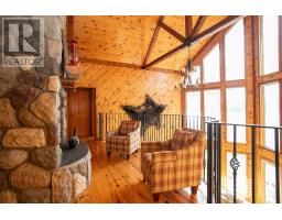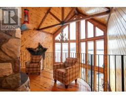 Water Access Retreat with Breathtaking Views & Endless Potential. Welcome to your dream lakeside getaway — a meticulously crafted, approx. 2,100 sq. ft. custom-built two-storey cottage featuring timeless pine interiors, hardwood flooring throughout, custom wrought iron railings, high-end hardie board exterior siding and charming architectural details that perfectly blend rustic warmth with elevated comfort. This four-bedroom retreat boasts garden doors and private balconies off every bedroom, vaulted ceilings in the upper bedrooms and living room, and stunning stone wood-burning fireplaces on both levels. The spacious main floor primary suite offers a walk-in closet and a private 3-piece ensuite. Enjoy a true open-concept layout anchored by a handcrafted pine kitchen and ceramic-tiled wet areas. The second-floor bathroom includes in-suite laundry, with a 3-piece setup. A steel roof ensures durability on the main cottage, sauna, and bunkie, while expansive front and covered rear decks invite seamless indoor-outdoor living. Guest & Lifestyle Features: Two-bedroom bunkie with 3-piece bath, utility room with 16-battery solar storage, generator, and solar panel system, Traditional wood-fired sauna with change room, Private dock for waterfront enjoyment with sand beach, Vaulted loft with steel rod railings offering additional living or recreational space. Boat storage/garage at main level with full garage door for outdoor item storage Systems & Lot Highlights: 100 amp electrical panel, Septic system with bed and two tanks, Water intake present, Surrounded by crown land to the left and behind property, Public sand beach close by, Quiet end of the lake with tons of privacy. Perfectly positioned to capture peaceful waterfront views and designed for multi-generational enjoyment, this exceptional property offers both off-grid independence and timeless cottage charm. A rare opportunity to own a waterfront haven with incredible potential for personal use or future investment. (id:50886)