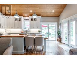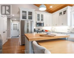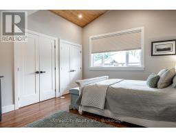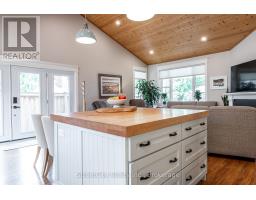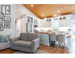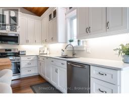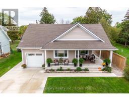 Discover tranquility in this charming lakeside community. Just steps away from Lake Huron's shores, this lake house offers private beach access for sun-soaked days and stunning sunsets. Minutes north of Grand Bend, built in 2018, this 1500sq ft 2-bedroom 2-bath property offers high end finishes and meticulously kept grounds. The interior of this home boasts an open concept living area & quartz kitchen w/ soaring cathedral ceilings, ample cabinet space and massive 2 tier island for family and guests to gather around. Main floor bedroom & gorgeous 4 pc bath w/ walk in shower & soaker tub. The upper level features a Primary bedroom w/ 4 pc washroom. Insulated & heated garage has been converted to a 3rd bedroom/games room/media room and is used year-round by the current owner. Main floor laundry w/ custom cabinetry. On demand water heater, furnace, air exchanger and central air, gas generator. The exterior of this home features an expansive beautiful fully covered front porch and side entrance, double concrete driveway, outdoor shower, ample deck with built-in cantilevered umbrella, 2 storage sheds and accessory parking in rear. All located on a private street with no through traffic a few steps from the private beaches. Call for more information or to schedule a private showing. (id:50886)