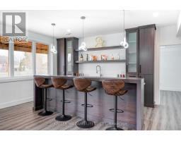 Welcome to this striking contemporary home offering over 3,800 sq. ft. of above-grade living plus a walk-out lower levelperfectly set on a premium lot backing onto a scenic stream and protected green space. Designed with dramatic architectural features, the home boasts soaring ceilings, oversized windows, a floating staircase, and high-end finishes throughout.The chefs kitchen features upscale Forno appliances, a waterfall island, full fridge/freezer, and a hidden pantry/prep area with a second dishwasher. The open-concept great room is anchored by a linear fireplace and built-in shelving, with direct access to a full-width deck overlooking the private backyard.Five spacious bedrooms include a luxurious primary retreat with a sitting area, walk-in dressing room, and spa-like ensuite. The lower level is an entertainers dream with a wet bar, wine storage, home theatre, gym, and bonus flex spaceall with walk-out access to a covered patio.Located minutes from trails, shopping, schools, and Hwy 401 access, this is modern luxury at its finest. Contact us today to learn more. (id:50886)