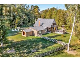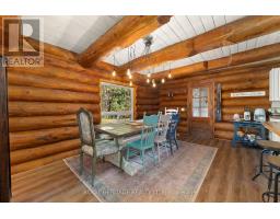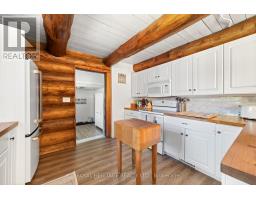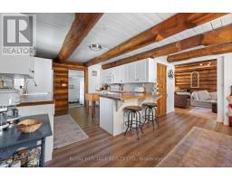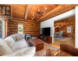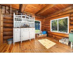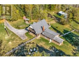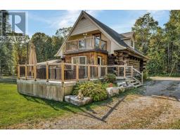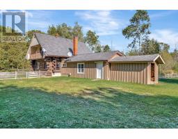 Absolutely stunning 4+2 bath log home set on 4.5 acres of private paradise. This one-of-a-kind property offers the perfect balance of rustic charm and modern comfort. Inviting heated entry led to an open concept living area with warm exceptional log craftsmanship of exposed wood beams and timeless pine hardwood. The main floor features a bright and cozy kitchen, dining area, and large living room. A beautiful main-floor bedroom, second full bathroom, and living room with a wood burning stove inserted in a stone surround. Sunken laundry room completes the level, along with direct access to a fully fenced yard ideal for pets or horses to run free. There is a brand new firepit for those warm star gazing nights. Three generously sized bedrooms and a full bathroom awaits upstairs. Two of the bedrooms include private balconies, creating the perfect spot to enjoy peaceful mornings or evening sunsets. Outside is a dream: gravel circular driveway, workshop with hydro, large two-Storey pole barn with loft & hydro, woodshed, generator shed hook-up close to the main house. Offered fully turnkey, this home comes complete with indoor and outdoor furnishing, smart lock access and strong Wi-Fi, you'll enjoy both convenience and comfort in your private paradise. (id:50886)