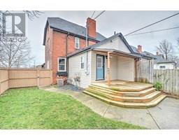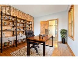 Step into this charming and historically significant 2-storey home, originally built by Hiram Walker. Blending old-world character with modern updates, this turn-of-the-century gem still features exposed brick, a classic covered front porch, hardwood floors, and a rare double staircase. The main floor offers a spacious open-concept living and dining area, a bright office or den that could also serve as a third bedroom, a renovated kitchen with new appliances, and a convenient powder room. Upstairs, you’ll find two bright bedrooms, a full bathroom with a beautiful stand-up shower, and laundry. Zoned for commercial and/or residential use, this property offers great potential for live/work flexibility. The backyard is fully fenced and landscaped with a covered deck, two parking spaces, and a wired storage shed ready for an EV charging station. (id:50886)
