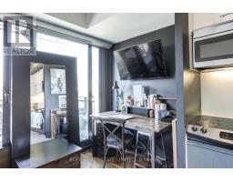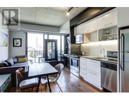 An architectural triumph by Acclaimed Saucier + Perotte Architectes, Urban Capital & Waterfront Toronto. Completed in 2013. River City Phase 1 is situated on the lower eastern edge of downtown in the desirable Corktown & the West Donlands neighborhoods. Very well connected to Riverside, Leslieville, Distillery District, St. Lawrence Market, Corktown Commons Park, Don River Valley Park & Toronto's Waterfront Trail System & the DVP. TTC 504 streetcar practically at your front door. A modern loft style apartment showcasing approximately 523 sf of very usable interior space & a large 54 sf northwest facing balcony overlooking a small park, King Street & the city,1 bedroom, 1 Bath, 9 ft exposed concrete ceilings, galvanized spiral duct, stylish walnut flooring throughout, modern white kitchen featuring stainless steel appliance & grey quartz counter, fully tiled spa inspired bath featuring soaker tub, large vanity, vanity mirror & laundry closet. The building features 24hr concierge,a well equipped gym, 2 large party rooms featuring lounge, bar, kitchen, dining Area, billiards table, comfortable guest suite, outdoor pool great for morning laps, sun deck for lounging & a BBQ grilling area. 1 storage locker and 2 bike racks included. (id:50886)