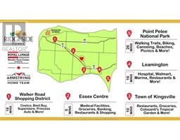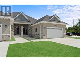 MODEL HOME OPEN EVERY SUNDAY 1-4PM - FREE FINISHED BASEMENT PACKAGE - $65,000 Value! - Welcome to Cottam, just 18 mins to Windsor! These luxurious ranch-style Twin Villas by Ridgeside Homes offer 2 floorplans and are built with the highest quality of materials and craftsmanship. Incredible curb appeal with full brick/stone exterior, 4 car conc. driveway, rear privacy fencing, sodded yard & front yard sprinkler system incl. Enjoy 9ft ceilings w/10ft tray & ambient LED lighting, engineered hardwood flooring and porcelain tile, custom cabinetry, 9ft island w/quartz counters, walk-in pantry, ceramic b-splash, living rm w/N.G. fireplace & 12ft patio doors to cov'd conc. patio, main-floor laundry, prim. suite w/tray ceiling, walk-in clst, dble vanity, ceramic/glass shower. Basement package gives ~1600 sq ft of addt. living space incl. 2 bdrms, 1 full bthrm, opt. wet bar and opt. gas fireplace. Note: Approx. $100/month for lawn maint., snow removal & roof fund. HST Incl. w/rebate to builder. Peace of mind with 7 Yrs of New Home Warranty w/Tarion! (id:50886)