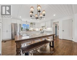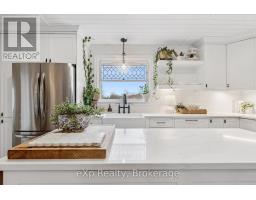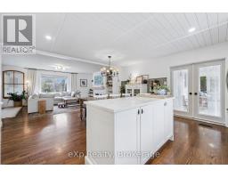 Beautifully updated modern farmhouse-style bungalow on over an acre, featuring a custom kitchen (2020) with quartz countertops, large island, a farmhouse sink and new flooring throughout. The primary suite offers a private ensuite, plus four additional spacious bedrooms and a 3-season sunporch overlooking the property. The lower level includes a private in-law suite with a full bathroom, an extra bedroom, and a separate play area. Laundry on both levels, two cold storage rooms, and an attached 2-car garage add convenience. Enjoy country living with a 3-year-old deck, new front porch, apple trees, landscaped gardens, chicken coop, large shed, and long driveway with ample parking. Updates include a new dishwasher and washer (2025), newer A/C, refrigerator, stove, windows, garden doors, and furnace. A private, well-maintained rural retreat just minutes from local amenities. (id:50886)
