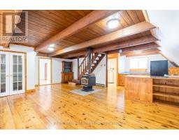 Top 5 Reasons You Will Love This Home: 1) Tucked along the serene Mad River, this property invites you to slow down and reconnect with nature, offering a private retreat where you can fish from your backyard, listen to the gentle flow of water, and unwind in a tranquil setting surrounded by mature trees on a quiet country road 2) The main three bedroom, one bathroom cottage exudes rustic charm with exposed wood beams, vaulted ceilings, and sun-filled windows that bring the outdoors in, mixing cozy comfort and natural warmth for year-round living or weekend getaways 3) The detached studio, complete with electric baseboard heating and a wood-burning fireplace, offers endless versatility as an art studio, guest suite, or peaceful home office, a perfect extension of the main home's inviting character 4) A detached garage provides a full workshop at the front and a powered bunkie at the back, ideal for hosting guests or pursuing hobbies, while a nearby wood shed keeps firewood close at hand for cozy evenings 5) Surrounded by trees and featuring a large vegetable garden with direct river access, this property is a haven for nature lovers, offering unmatched privacy just minutes from the charming village of Creemore with its boutique shops, cafés, and welcoming community atmosphere. 1,539 above grade sq.ft. *Please note some images have been virtually staged to show the potential of the home. (id:50886)