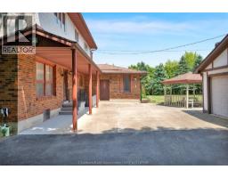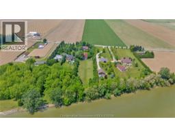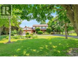 Welcome to a rare estate ownership opportunity along the scenic Grande River Line—this custom built timeless architectural design 2-storey double car garage home rests on nearly 3 acres of beautifully maintained land with privacy mature tree screening, offering tranquility, as well as a wealth of development potential. Inside the existing home, you'll find 4 spacious bedrooms, including a large primary suite with its own shower ensuite bath. The main floor layout blends function and comfort with its large great room, formal living and dining areas, and a spacious sit-in bright kitchen that opens to the morning sunrise and rear yard views. This home also features an all season sunroom escape overlooking the manicured rear yard property. The lower level layout functions with a second food prep area, a large cold storage area, and an extensive office area with direct access to the exterior via walk up steps—ideal for visitors and professional work use. Outside the home, you’ll find lots of parking spaces with a circular asphalt and concrete driveway, plus a detached two car garage and workshop area with its own source of high voltage hydro. A real bonus is a huge storage barn located on this property, character-filled that adds extra charm and utility—perfect for hobby use, storage, or conversion. Step into the peaceful backyard oasis featuring a lovely gazebo, perfect for relaxing, entertaining, or enjoying river views. The home is connected to municipal water, but also includes a private well on the property, offering added utility and flexibility. Imagine all of the benefits of owning this estate property that backs onto the Thames River with mature trees and a canvas for your endless creative ideas, only minutes from everything including shopping, amenities and the downtown Chatham core . (id:50886)