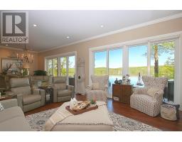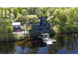 Welcome to lakeside elegance in this custom executive class 5-bedroom, 4-bath waterfront home offering over 4,000 sq. ft. of beautifully designed living space. Set literally on the shores of sought-after Restoule Lake with over 500' of owned shoreline, designed with sophistication in mind, this home offers the perfect setting for luxury living and exceptional entertaining. The main level impresses with soaring 10 ceilings, open-concept living and dining complete with gas fireplace and custom built-ins plus a wall of windows showcasing the panoramic lake views. The chef's kitchen features dual wall ovens, stove cooktop, double dishwashers, walk-in pantry, and double refrigerators - perfect for entertaining. Walk out to the massive deck (60' x 11'8") with glass railings, or relax in the warm and inviting Muskoka room. A office/den with deck access and full bath completes the main level. Upstairs, a grand hallway leads to five spacious bedrooms. The primary suite is a private retreat with a spa-inspired ensuite, walk-in closet, and elevated private lakeview deck. The upper level also features an additional full bath with luxury walk-in shower and convenient laundry. The lower level boasts a spectacular 48' x 19' rec/games room opening to a 61' x 11'6" covered patio to enjoy your lakeside retreat regardless of weather. Step directly onto the dock from the patio or into the relaxing hot tub, then gather around the lakeside fire pit for an evening of star gazing. Additional features include: detached double Carport, lakeside storage building or art studio (30'x14'), Surveillance system, outdoor timed lighting, dual level climate control, 3 speed fans in every bedroom, back-up generator, 50'x16' floating docking system w/pergola. This stunning waterfront oasis offers endless possibilities - whether as a luxury bed-and-breakfast, a private retreat or a year-road residence for the "Ultimate Lakeside Lifestyle". Seller will consider holding a first mortgage. (id:50886)
