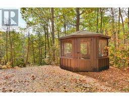 Features Wooded Area, Irregular Lot Size, Sloping, Gazebo